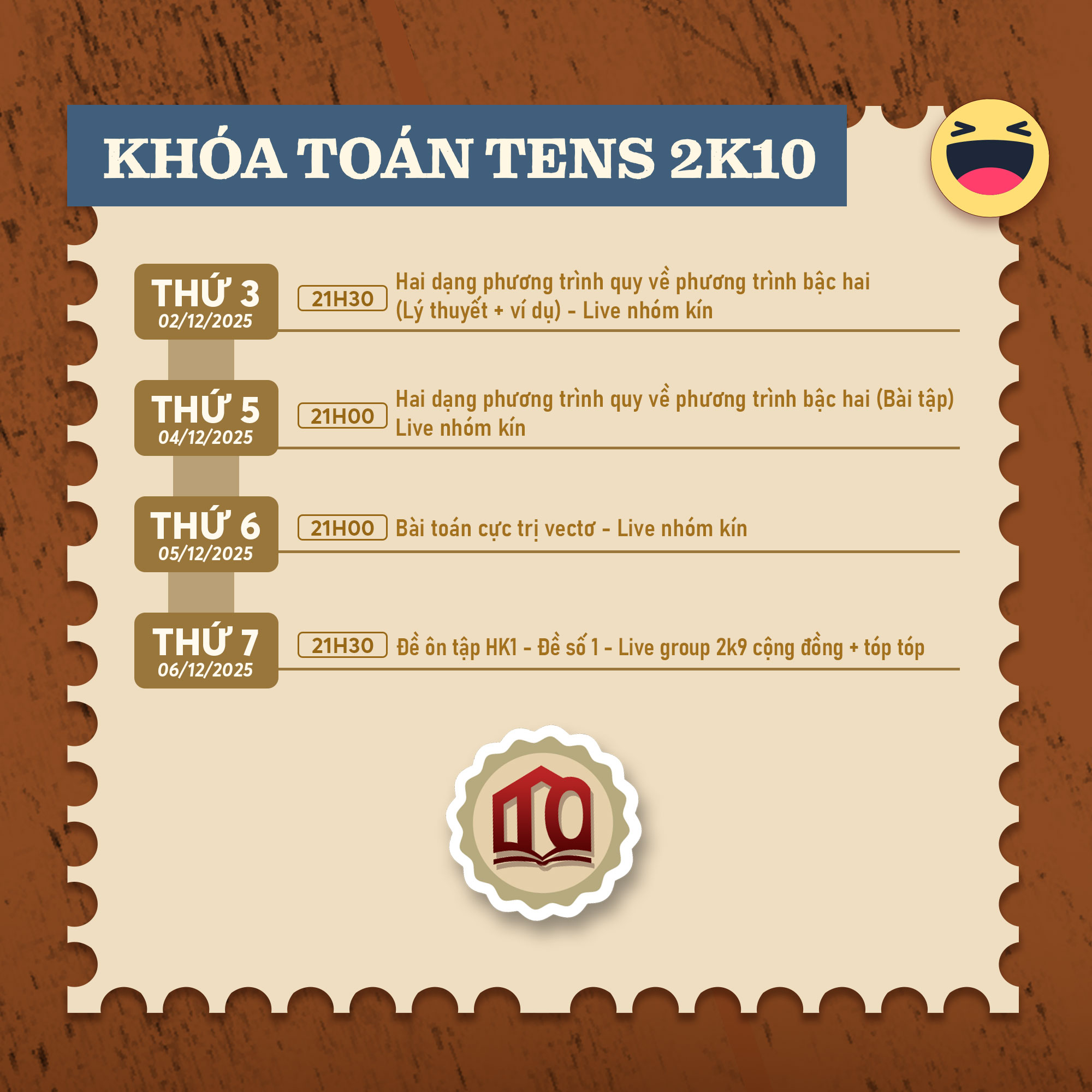 THỜI KHÓA BIỂU KHÓA TOÁN TENS 2K10 | TUẦN 1/12-7/12 - Tin tức | Học Online - Hệ thống giáo dục Tenschool