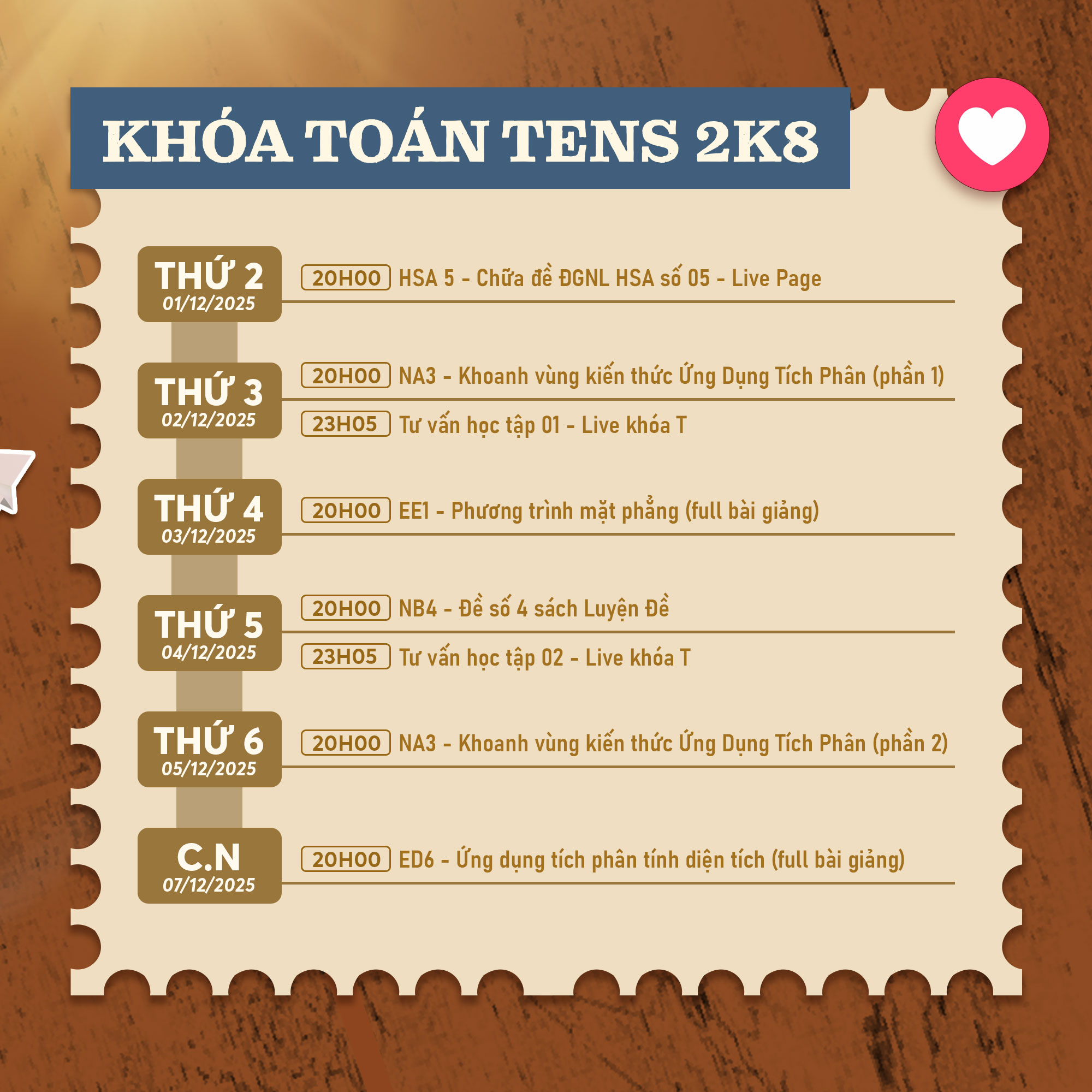 THỜI KHÓA BIỂU KHÓA TOÁN TENS 2K8 | TUẦN 1/12-7/12