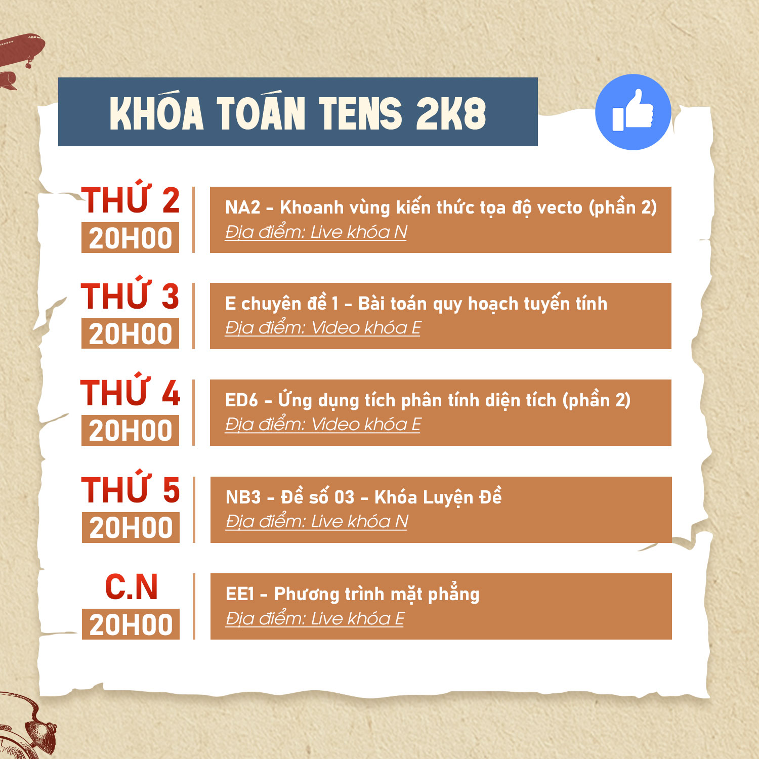THỜI KHÓA BIỂU KHÓA TOÁN TENS 2K8 | TUẦN 1/12-7/12