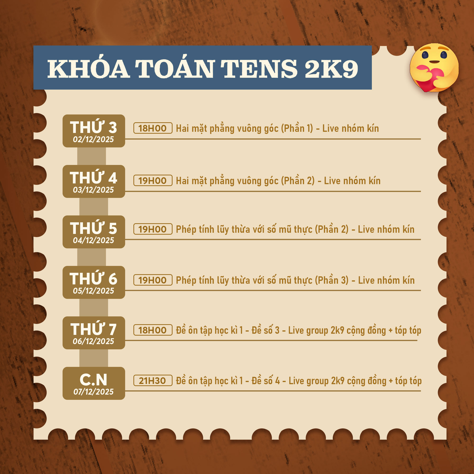 THỜI KHÓA BIỂU KHÓA TOÁN TENS 2K9 | TUẦN 1/12-7/12